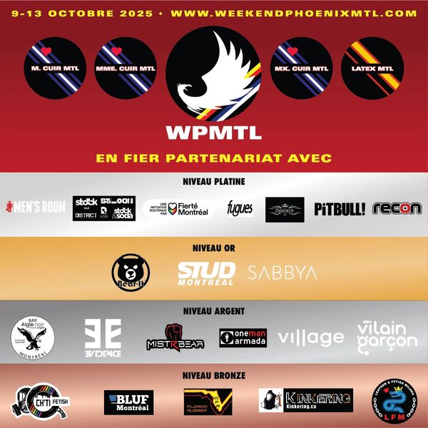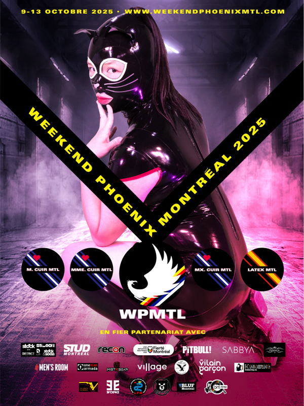 Avec l’appui et le soutien de la communauté fétiche, le Club Cuir Latex Phoenix Montréal reprend les rênes des Concours des Titrés Fétiche en 2025. Préparez-vous pour un weekend rempli d’activités visant à élire les leaders des prochains titres : M. Cuir Montréal, Mme. Cuir Montréal, MX. Cuir Montréal et Latex Montréal !